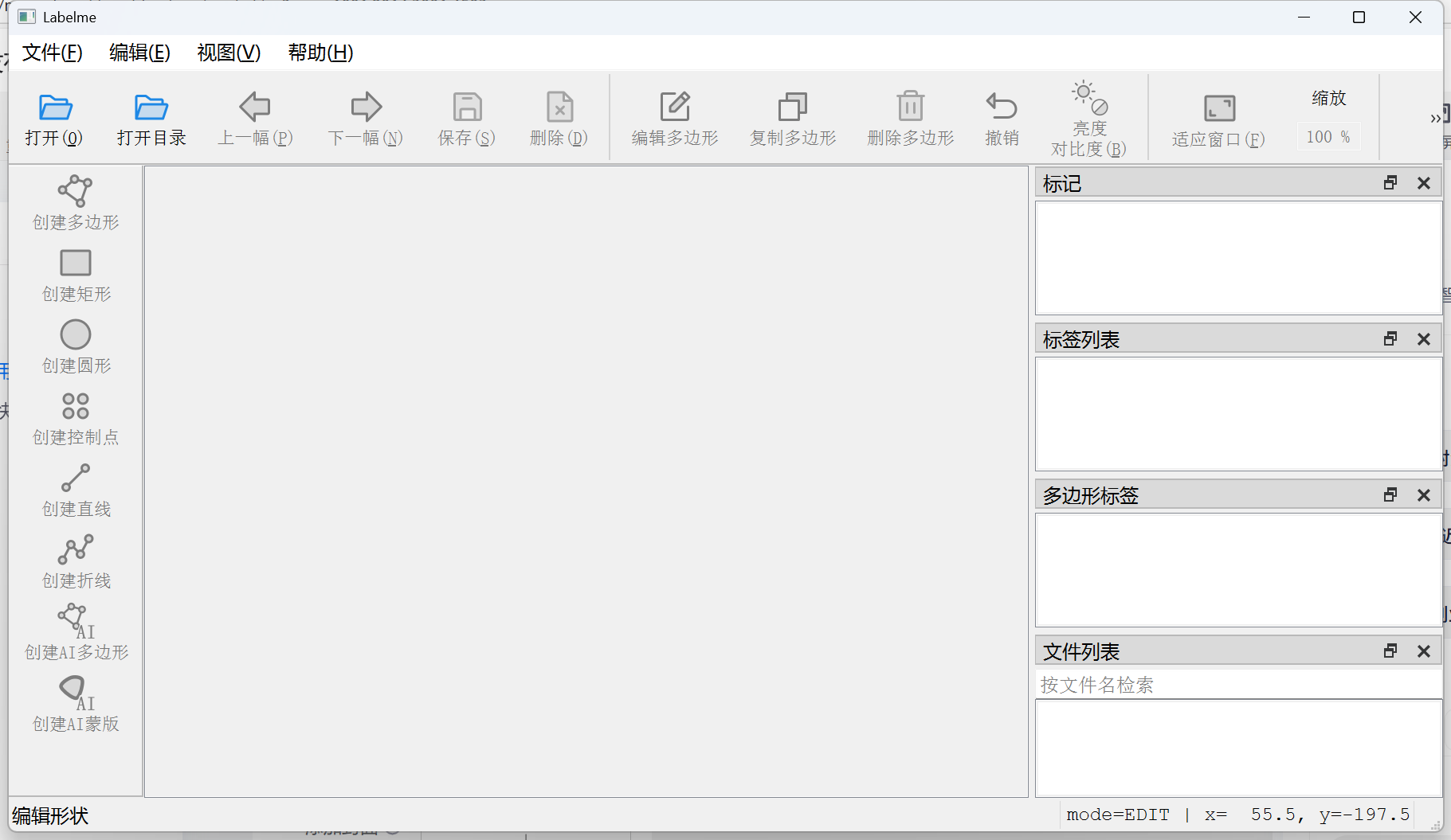 - 我的python版本是3.9.18,使用pip install labelme安装的labelme版本是5.10.1,直接在安装的环境输入labelme即可启动,如上图所示。