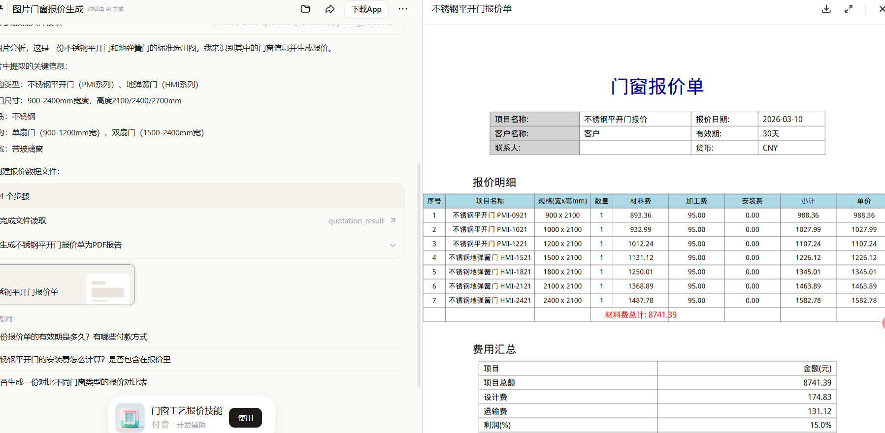「AI门窗工艺报价」