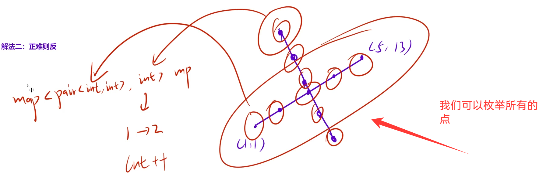 for(int i = x1,j = y1;;i += dx,j += dy)