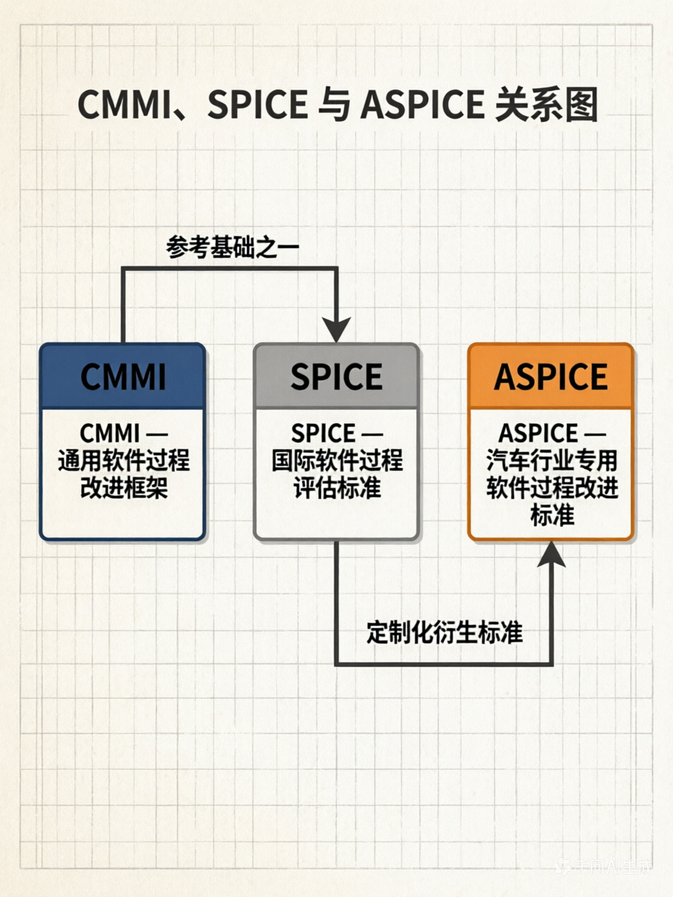 ASPICE:基于SPICE"母版"定制出来的、专门用于汽车行业的"专业版"。