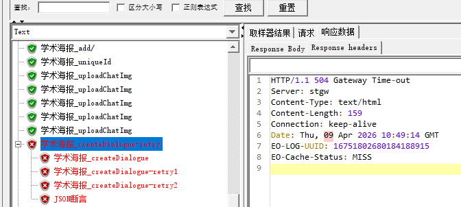 原标签-retry)包含最后一次尝试的请求/响应数据、所有尝试的总字节数、总响应时间(不含暂停)。
