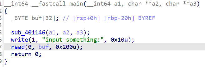 利用数组下标越界覆盖buf为ret,再利用read读入一字节改其为main程序中的某一处。