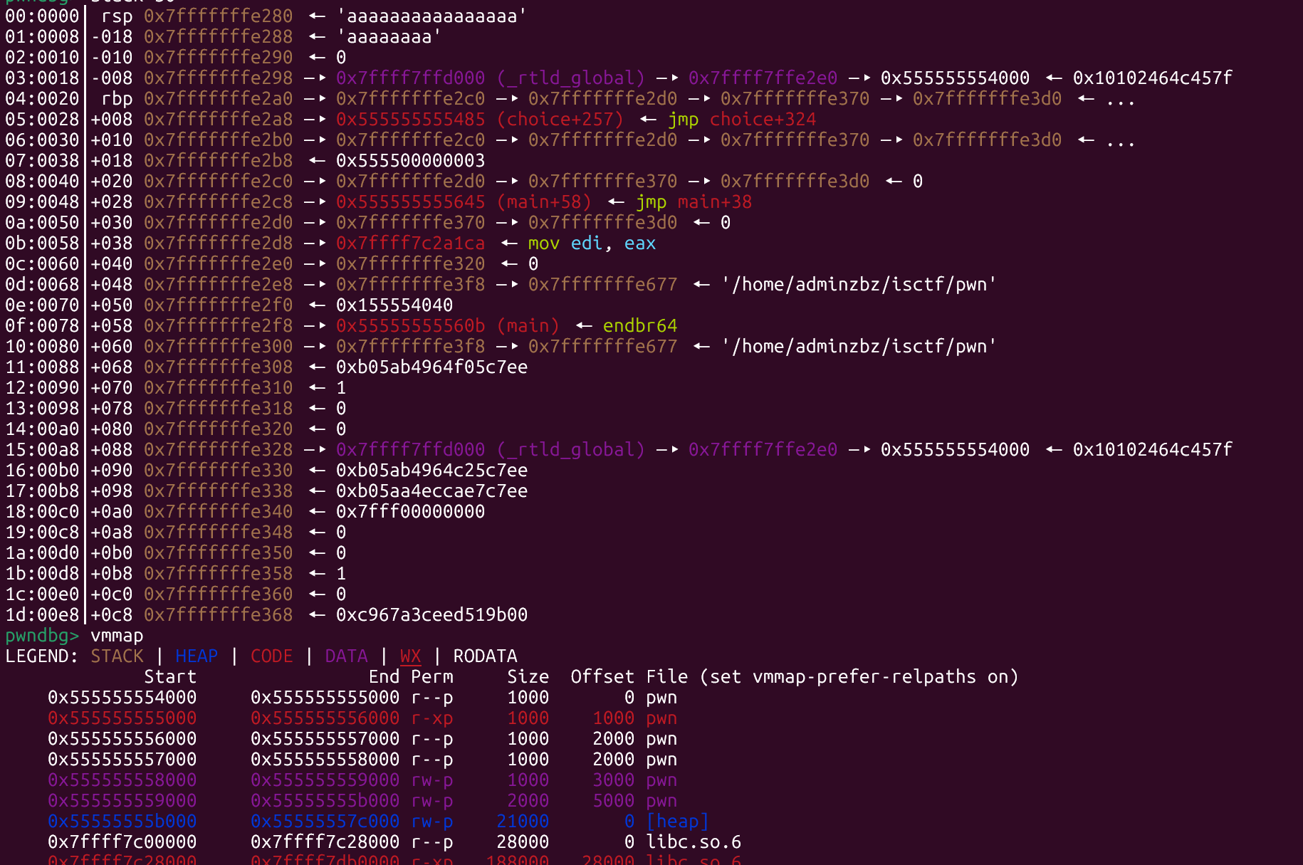 刚开始的时候还给了栈地址,那么我们就可以计算出rbp和ret的地址。