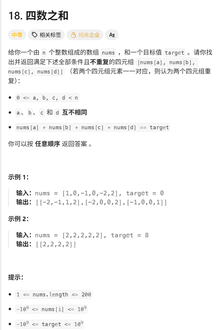 试题8:四数之和