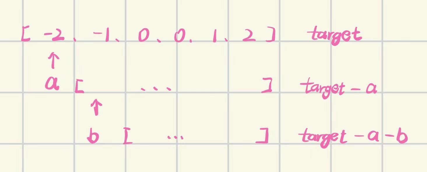 使这两个数的和等于target - a - b即可