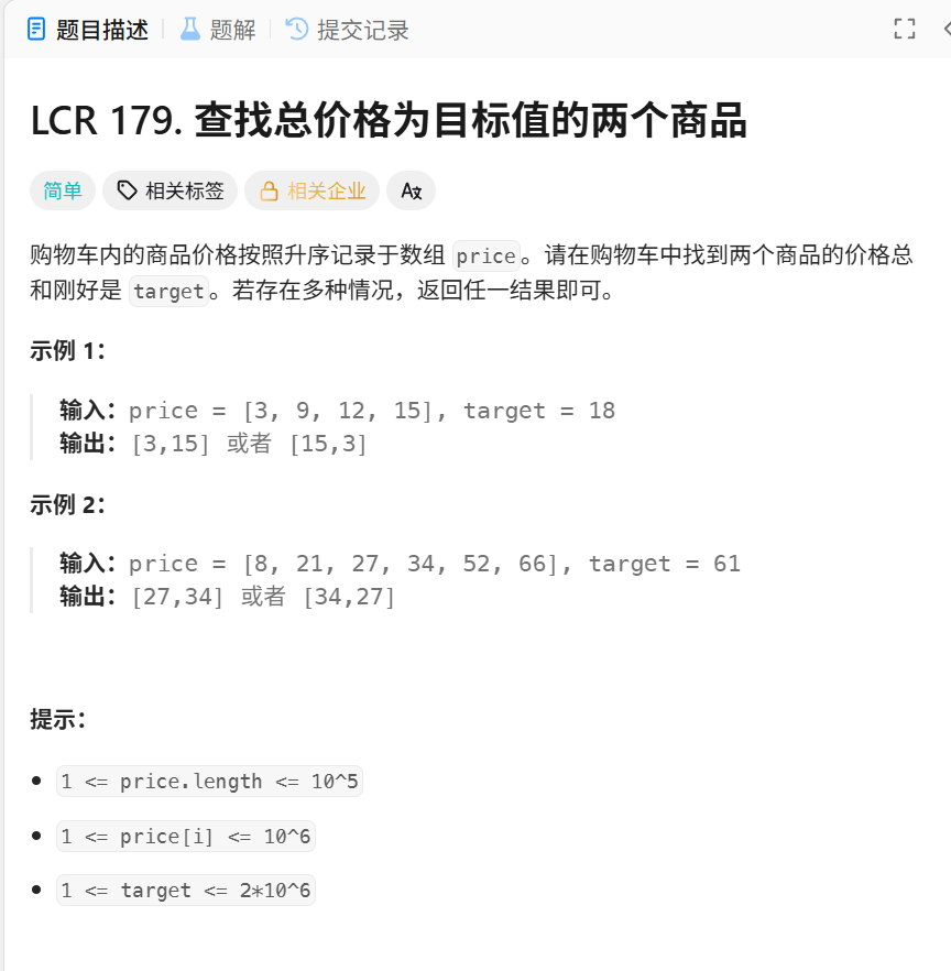 解法二:排序+双指针(有序数组)