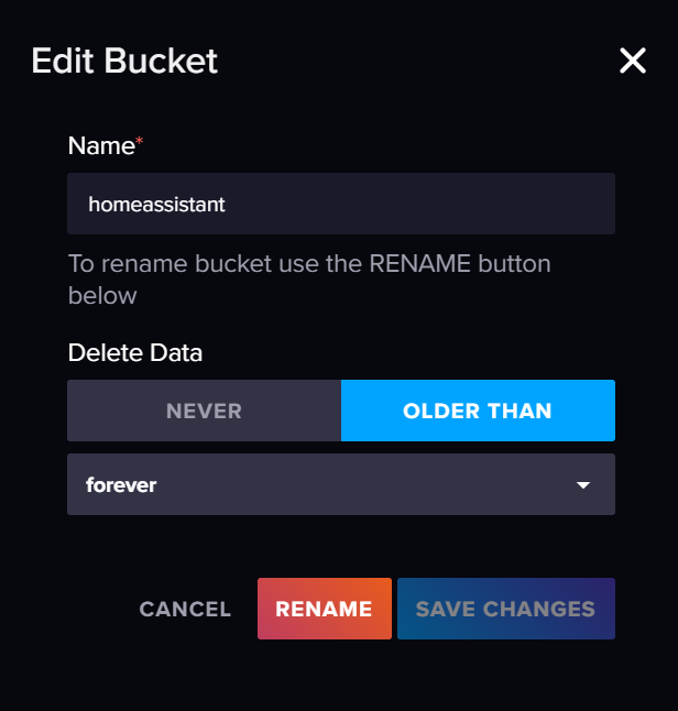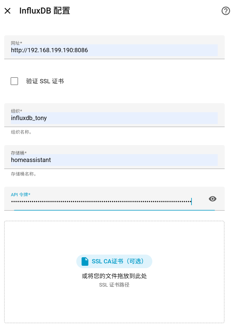 | Default Bucket | homeassistant | 你提前建好的桶名,大小写一致 |