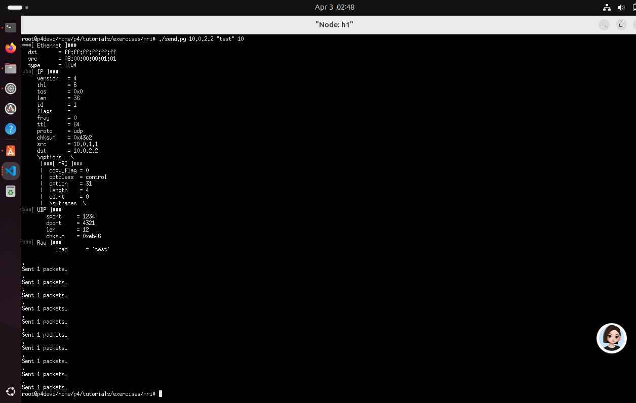 | | Calc.py | 接收你输入的运算式(如 1+1)→ 打包成 P4calc 自定义协议包 → 发给交换机 → 接收交换机返回的结果 → 打印出来。 | | | 研究basic_tunnel → | |---|---------------------------------------------------------------------------------------| | | 自定义tunnel 交换机在转发时,优先根据 myTunnel.dst_id 匹配流表转发,而不再解析内层 IP 地址;如果没有隧道头,则回退到正常 IPv4 转发逻辑。 | | |