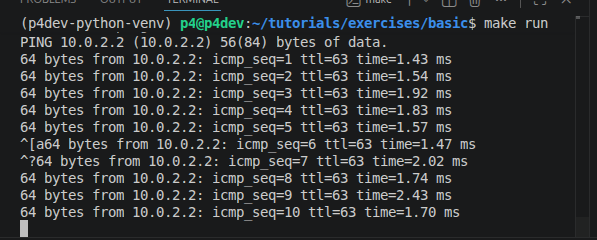 02:00因网络问题失败,考虑到编译安装网速外加版本较老,决定采用导入, |-----------------------------|-------------------------------------------------------------------------------------------------------------------------------------------------------------------------------------------------------------------------------------------------------------------------------------------------------------------------------------------------------------------------------------------------------------------------------------------------------------------------------------------------------------------------------------------------------------------------------------------------------------------------------------------------------------------------------------------------------------------------------------------------------------------------------------------------------------------------------------------------------------------------------------------------------------------------------------------------------------------------------------------------------------------------------------------------------------------------------------------------------------------------------------------------------------------------------------------------------------------------------------------------------------------------------------------------------------------------------------------------------------------------------------------------------------------------------------------------------------------------------------------------------------------------------------------------------------------------------------------------------------------------------------------------------------------------------------------------------------------------------------------------------------------------------------------------------------------------------------------------------------------------------------------------------------------------------------------------------------------------------------------------------------------------------------------------------------------------------------------------------------------------------------------------------------------------------------------------------------------------------------------------------------------------------------------------------------------------------------------------------------------------------------------------------------------------------------------------------------------------------------------------------------------------------------------------------------------------------------------------------------------------------------------------------------------------------------------------------------------------------------------------------------------------------------------------------------------------------------------------------------------------------------------------------------------------------------------------------------------------------------------------------------------------------------------------------------------------------------------------------------------------------------------------------------------------------------------------------------------------------------------------------------------------------------------------------------------------------------------------------------------------------------------------------------------------------------------------------------------------------------------------------------------------------------------------------------------------------------------------------------------------------------------------------------------------------------------------------------------------------------------------------------------------------------------------------------------------------------------------------------------------------------------------------------------------------------------------------------------------------------------------------------------------------------------------------------------------------------------------------------------------------------------------------------------------------------------------------------------------------------------------------------------------------------------------------------------------------------------------------------------------------------------------------------------------------------------------------------------| | 阅读网上资料 | |------|---------------------------------------------------------------------------------------------------------------------------------------------------| | 资料汇总 | https://www.cnblogs.com/p4p4p4/p/14626262.html | | | | | | 下载并配置环境 | |------------------------------------------------------------------------------------------------------------------------------------------------------------------------------------------------------------------------------------------------------------------------------------------------------------| | https://blog.csdn.net/weixin_45476502/article/details/124365718 virtual box 7.2.6参照github上的最新 官方文件:P4 Tutorials Development 2026-04-01.ova 成功,流泪了,以后先搜索查阅再以官网为准。 密码p4 | | | 语法 | |---------------------|------------------------------------------------------------------------------------------------------------------| | action | P4 中的action是可复用的代码块,相当于 C 语言里的「函数」,用来封装一段固定的逻辑,在table(流表)中被调用。 通用动作vs业务动作 | | standard_metadata | 这是 P4 架构内置的元数据,由交换机自动填充,包含端口、时间等系统信息: ingress_port:数据包进来的端口号 egress_spec:数据包要发出去的端口号 | | V1Switch 架构 = 固定流水线 | Parser(解析) MyVerifyChecksum(校验验证) MyIngress(入口处理 → 你写计算逻辑) MyEgress(出口处理) MyComputeChecksum(计算校验) MyDeparser(封装) | | Table | key = {