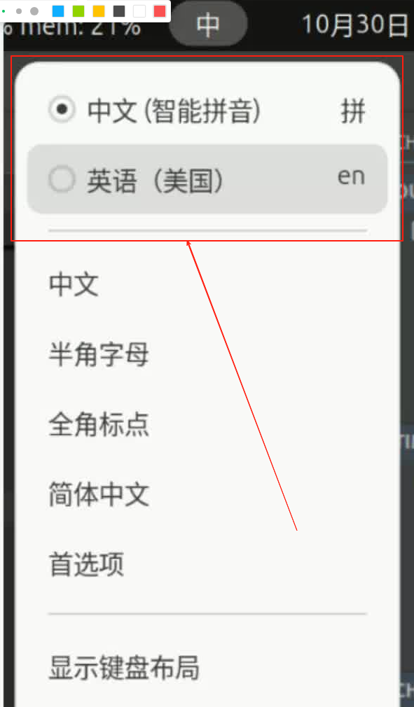 - 桌面右上角 : 中文的【中】字 / 点击