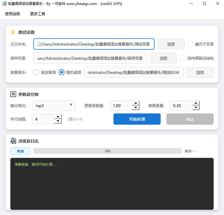 处理中会有进度和日志提示(日志只保留最近200条,避免刷屏)。跑完建议抽几段试听: