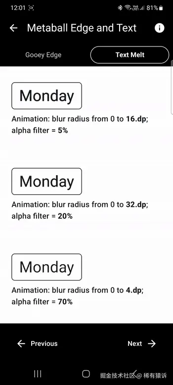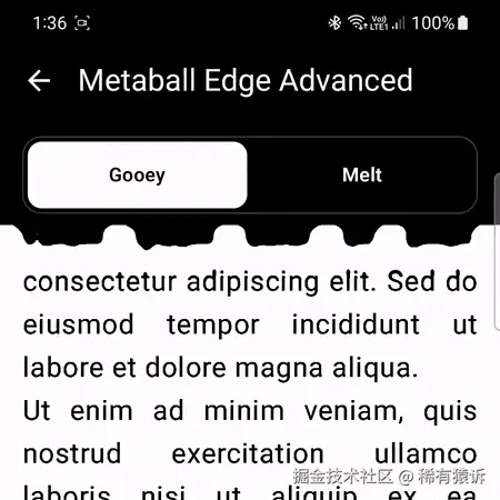 当处理像文本这样非常小的元素(笔画宽度只有几个 dp)时,所有 metaball 配置参数------例如自定义局部模糊区域的高度或渐变带------也都会变得非常小。