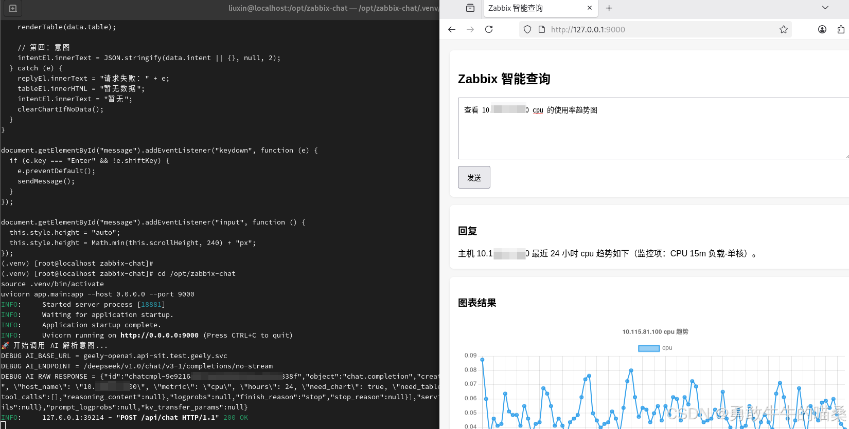 构想:构建一个简易的交互界面,允许用户通过自然语言描述查询意图,系统自动将其转换为对Zabbix API的调用,并直接返回结构化的监控数据结果。