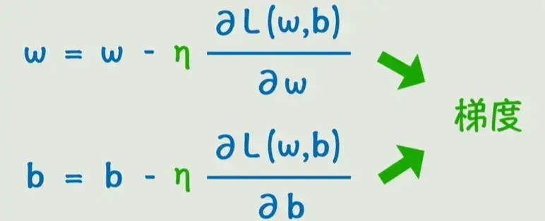 假设我们只关注某一个参数 w,当前取值下损失函数值为 L。如果我们让 w 增大一点点,发现 L 也随之增大,那就说明应该反过来减小 w;反之,如果增大 w 使 L 减小,那我们就继续朝这个方向调整。而损失函数L随着参数w变化而变化的程度,其实就是损失函数对w的偏导数。而我们要做的,就是让w和b不断地向偏导数地反方向去变化。具体变化的快慢,我们再增加一个系数(学习率 )来控制。这些偏导数所构成的向量就叫做梯度 。不断变化w和b使得损失函数不断减小,进而求出最后的w和b,这个过程就叫做梯度下降。这个过程用数学语言描述,就是利用损失函数对 w 的偏导数(即梯度)来指导参数的更新方向------朝着梯度的反方向移动。