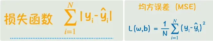 为了量化"拟合得好不好",我们需要一个衡量标准。对于单个样本,可以用预测值与真实值之差的绝对值来表示误差。将所有样本的误差累加起来,就得到了整体误差的度量。这个函数就叫做损失函数 ------用于表示预测数据与真实数据误差的函数。为了避免绝对值带来的不可导问题,通常采用平方来代替绝对值,然后对所有样本取平均,这样就得到了均方误差 ------一种常用的损失函数。