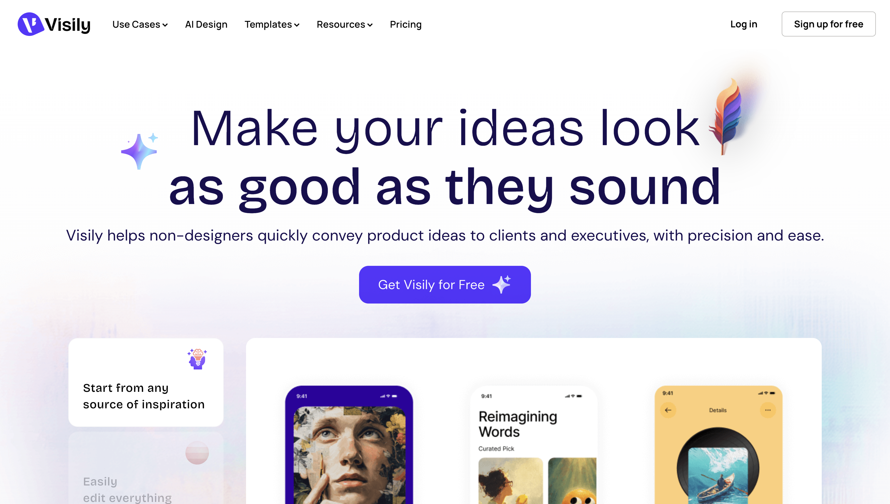 目标一:快速将创意可视化,内部对齐产品结构。选择Visily,上手门槛最低,可在数小时内将文字需求或草图转化为可讨论的界面方案。