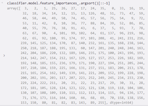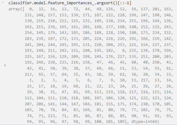 下图是获取每个特征的重要性的下标排序(降序):