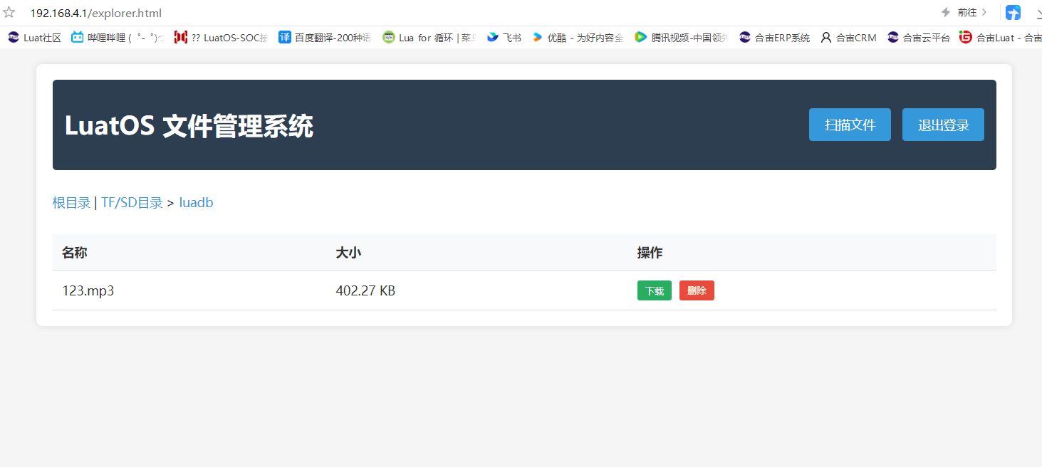 - 确认 LuatOS/script/libs 扩展库目录下 explorer.html 文件是否烧录到设备中;