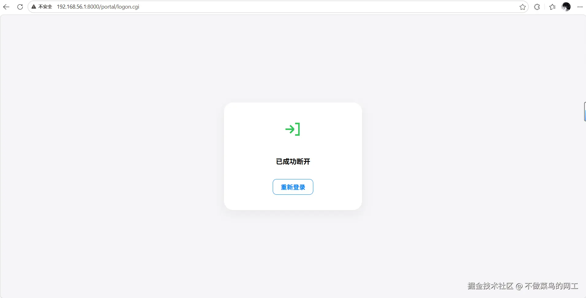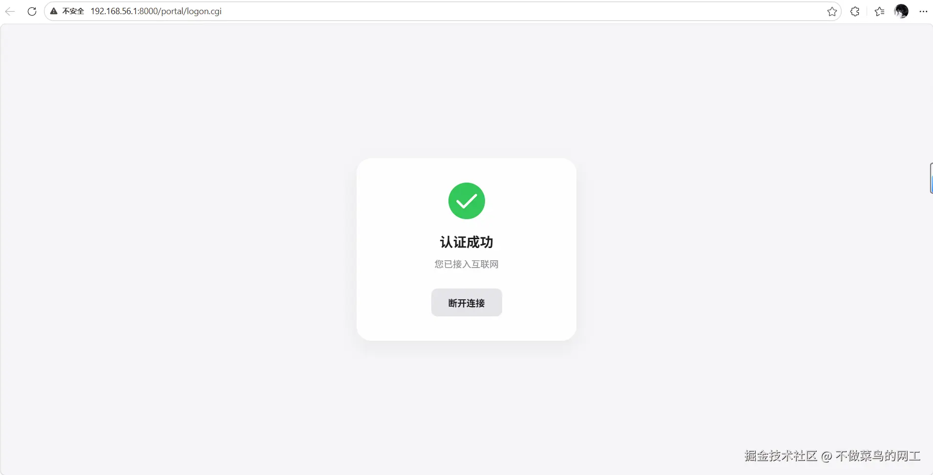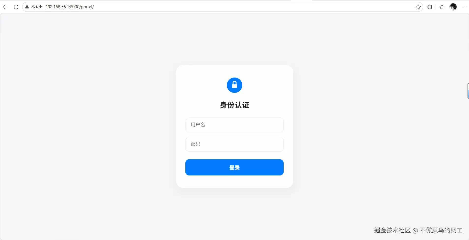 url http://192.168.56.1:8000/portal # Portal本地接口地址 后续用户访问此链接输入账户密码
