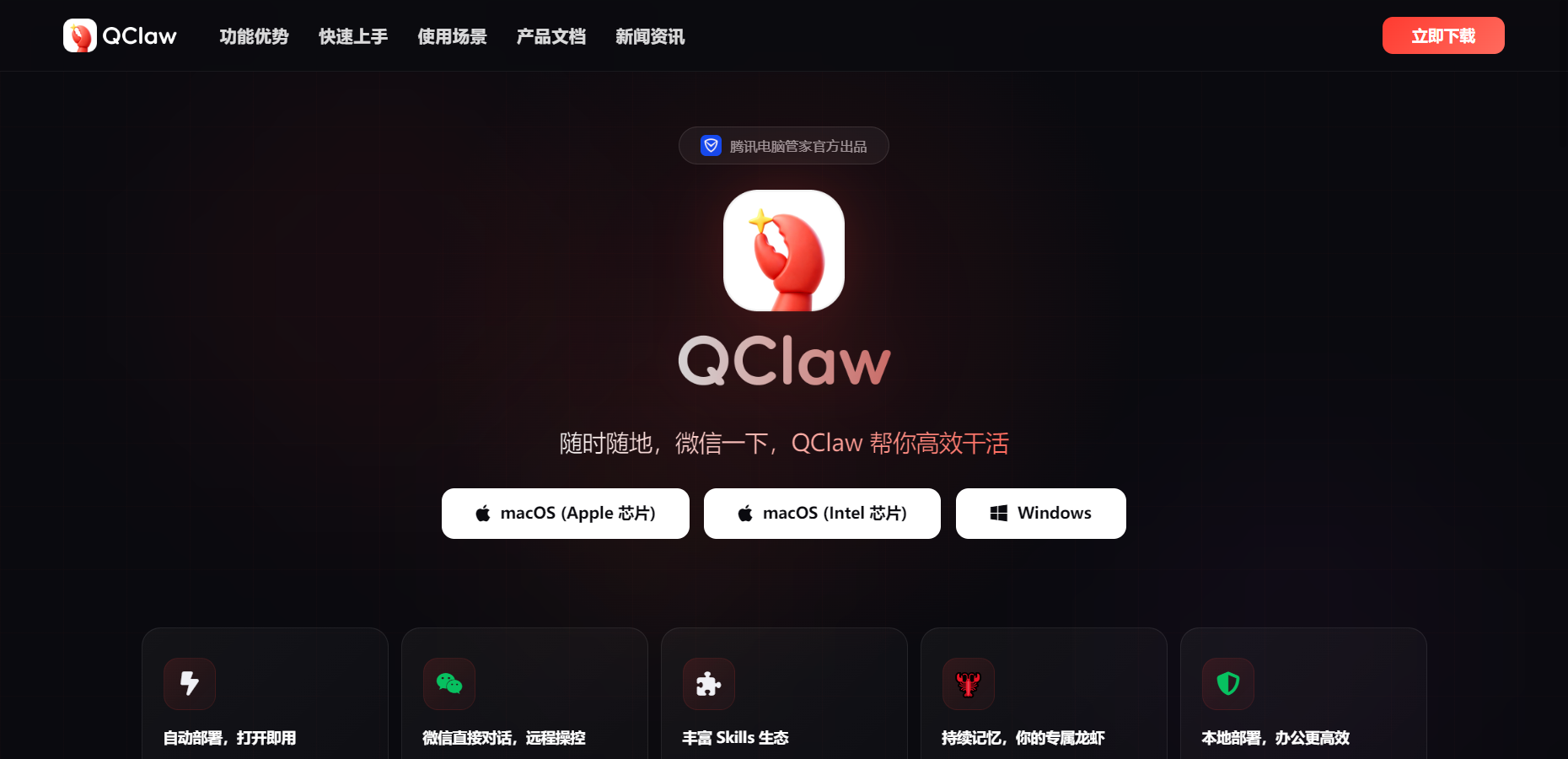 腾讯近期推出的QClaw,作为OpenClaw的一键启动包产品,可在Windows、Mac系统轻松安装,零门槛上手,即便你是从未接触过"小龙虾"的新手,也能快速解锁其强大功能,轻松搞定工作中复杂繁琐的重复性操作。