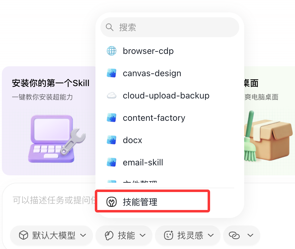 第二步,安装百度搜索Skill,保障数据准确性。为了获取权威一手数据,我们需要为QClaw添加搜索能力,具体操作如下: