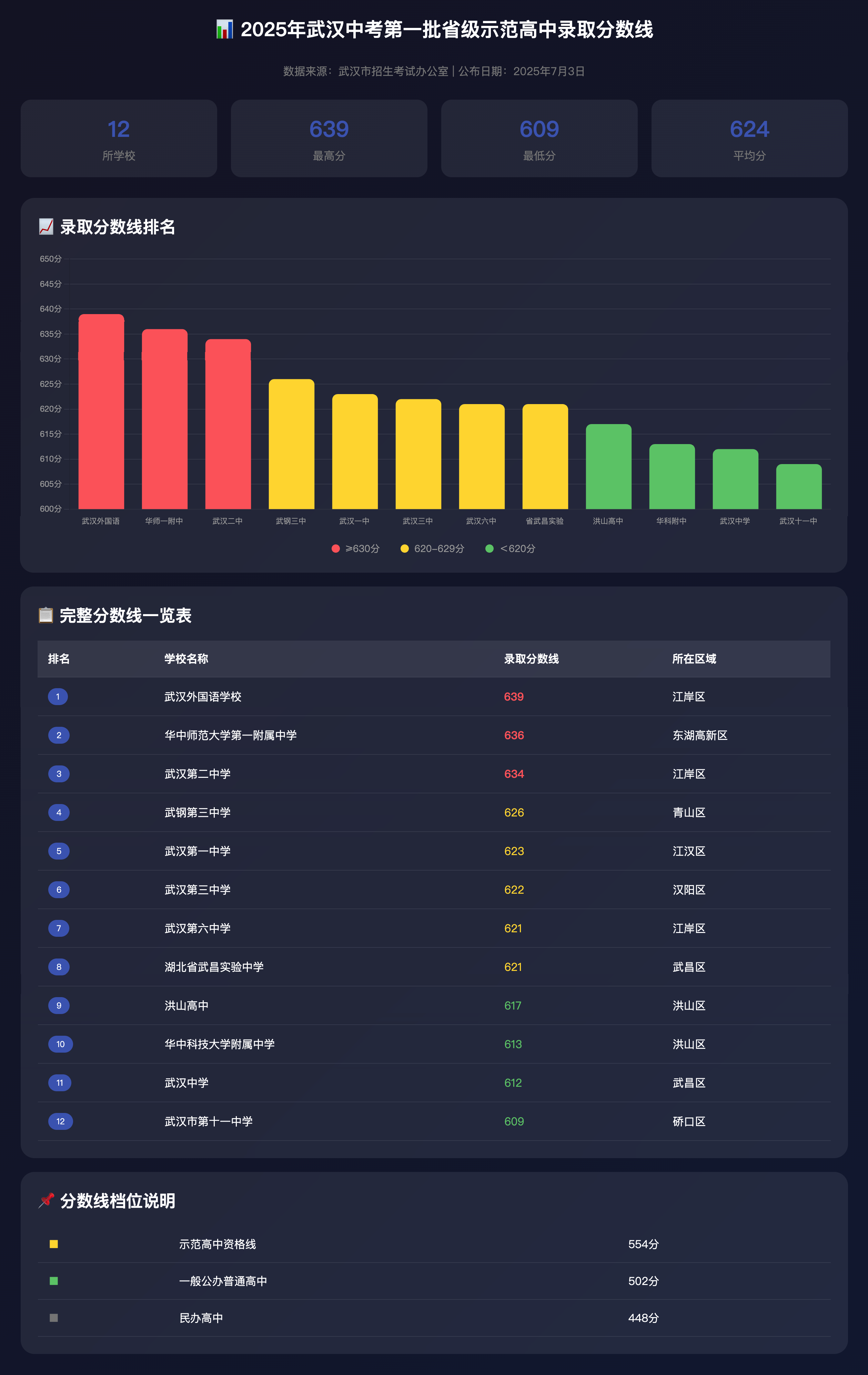 帮我收集2025年武汉中考所有省重点高中录取分数线,收集完成后,生成可视化图表。