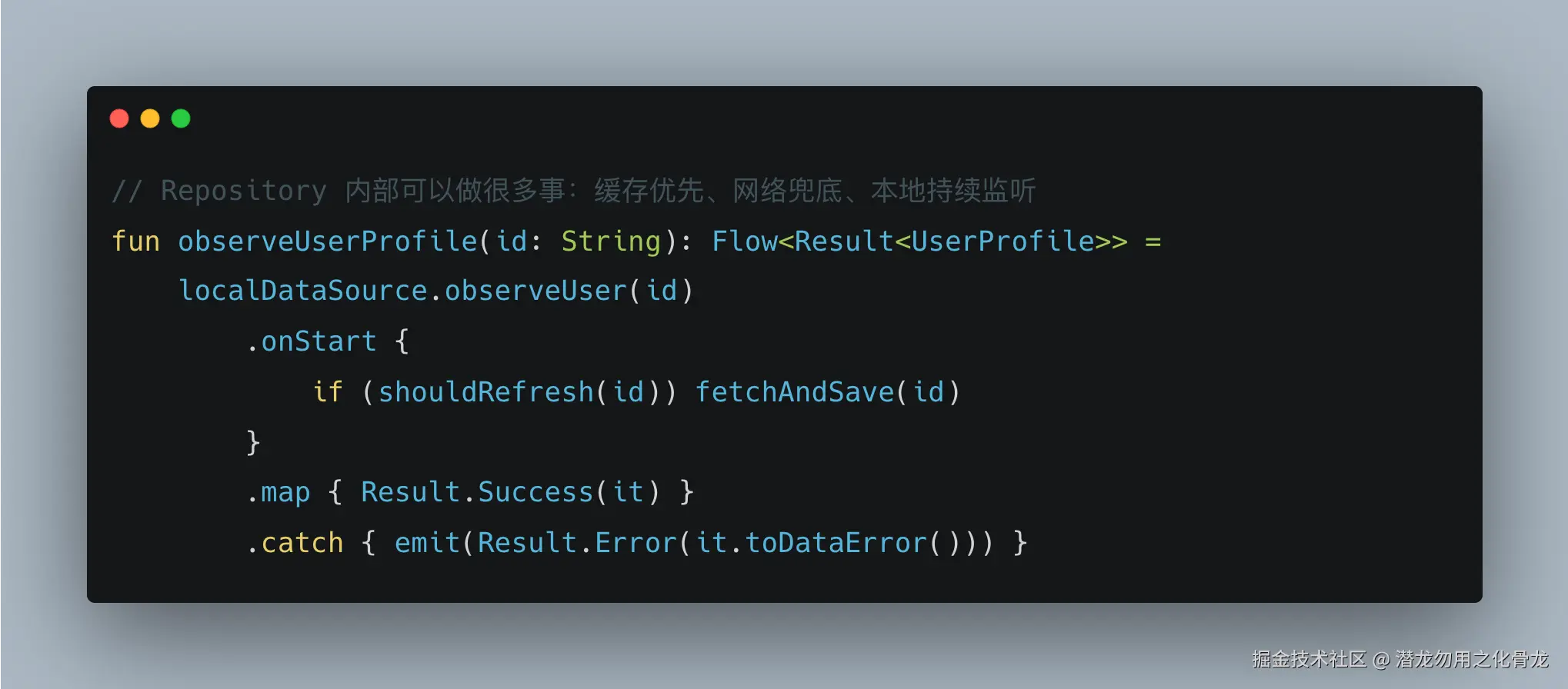 调用方拿到的只是一个 Flow,完全不知道里面发生了什么。