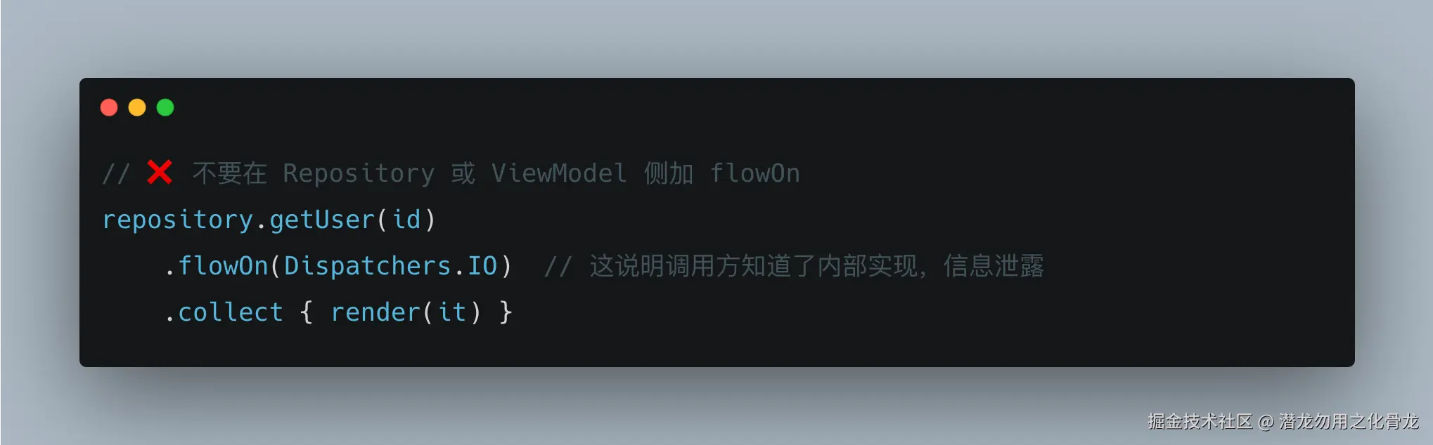 它为什么知道?因为 Repository 没有封装好线程,调用方被迫承担了"该在哪个线程跑"这个复杂度。