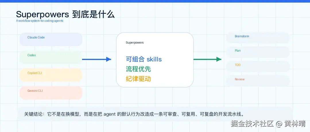 如果只用一句话概括 Superpowers,我会这样说: