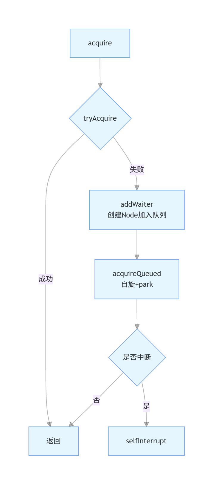 acquire是独占模式下获取锁的核心方法,其流程如下: