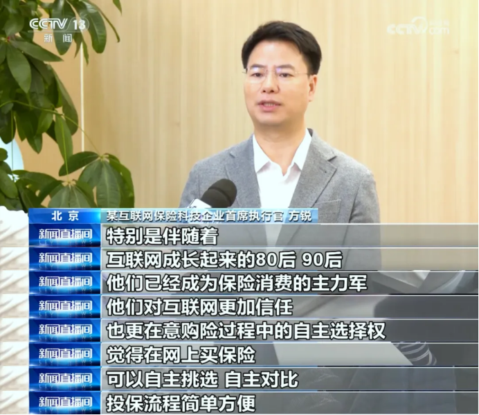 央视新闻频道CCTV-13《新闻直播间》栏目对互联网保险的高速发展进行了专题报道,深入探究了行业所面临的机遇与挑战。元保集团创始人兼CEO方锐 ,这位曾经的网易高管作为互联网保险科技企业代表接受采访,畅谈互联网保险发展新篇。