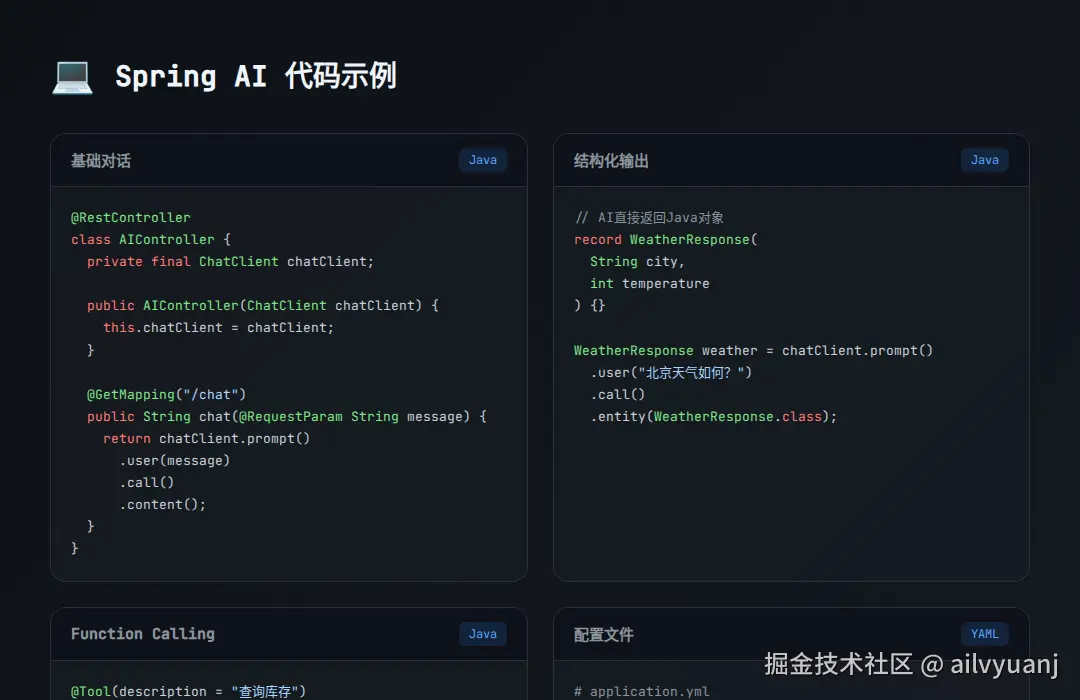 - 零学习成本:会Spring Boot就会Spring AI