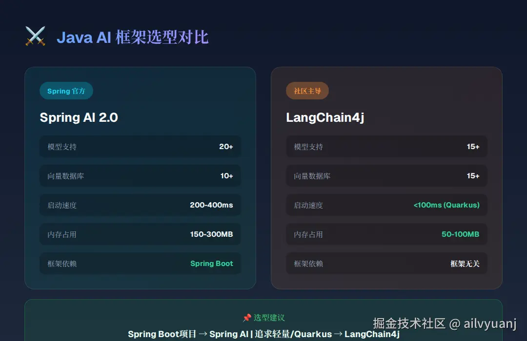 四、选型指南:Spring AI vs LangChain4j