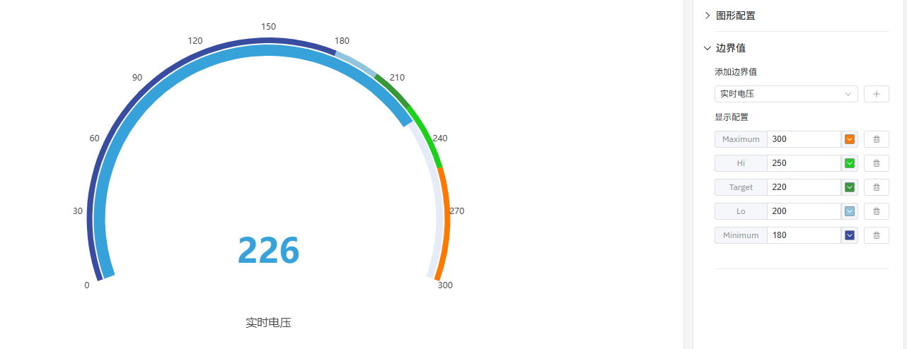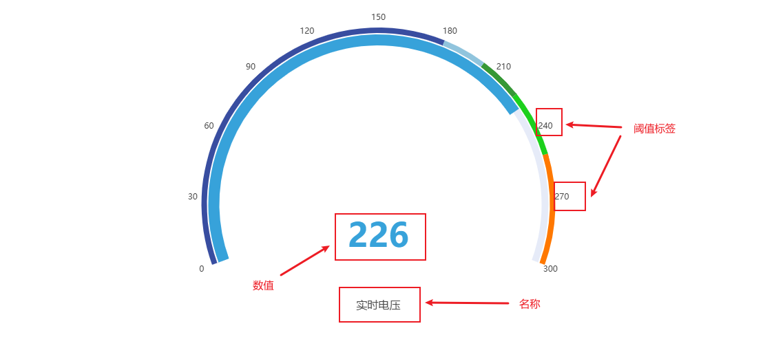 | 显示阈值标签 | 开关:在表盘弧线周围显示阈值数值 |