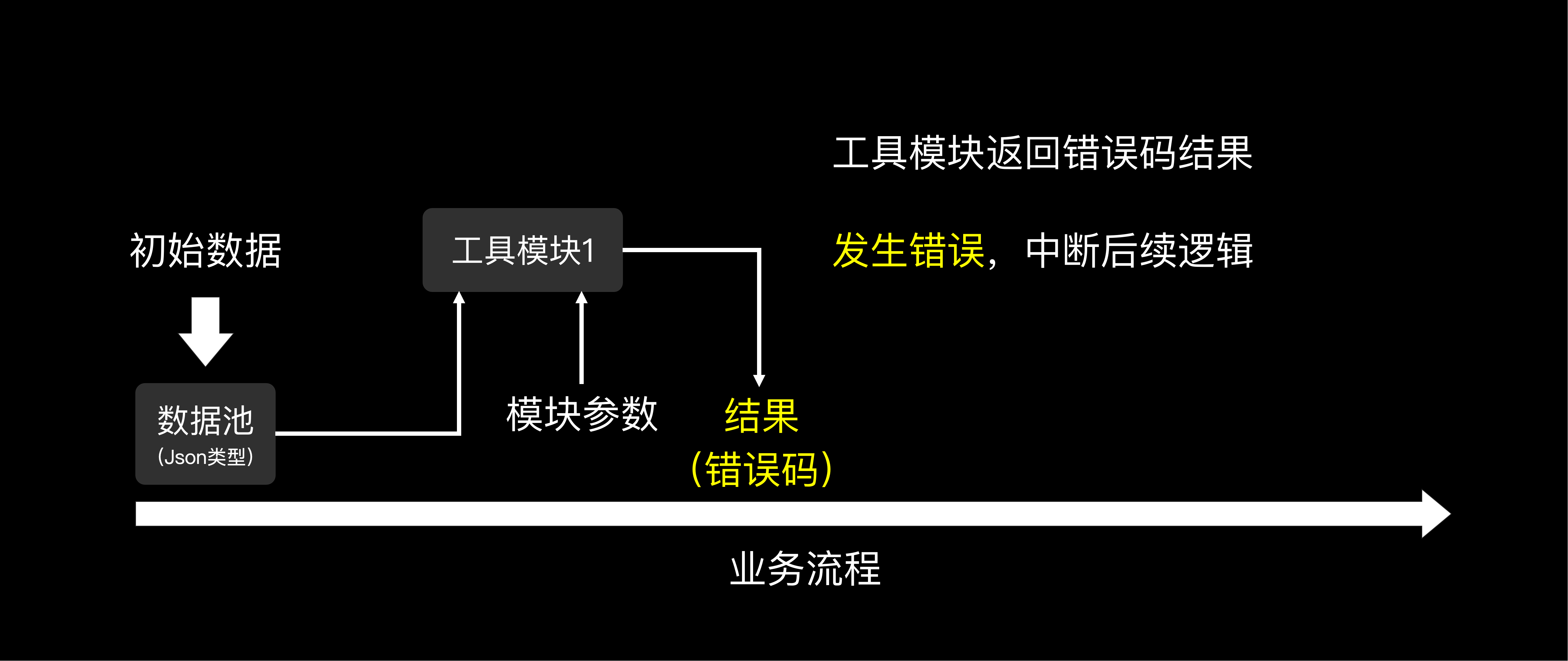 由于数据池的加入,业务代码就真的像流程图一样,只需要编排工具模块使用顺序,且对每一个工具模块进行参数设置即可。