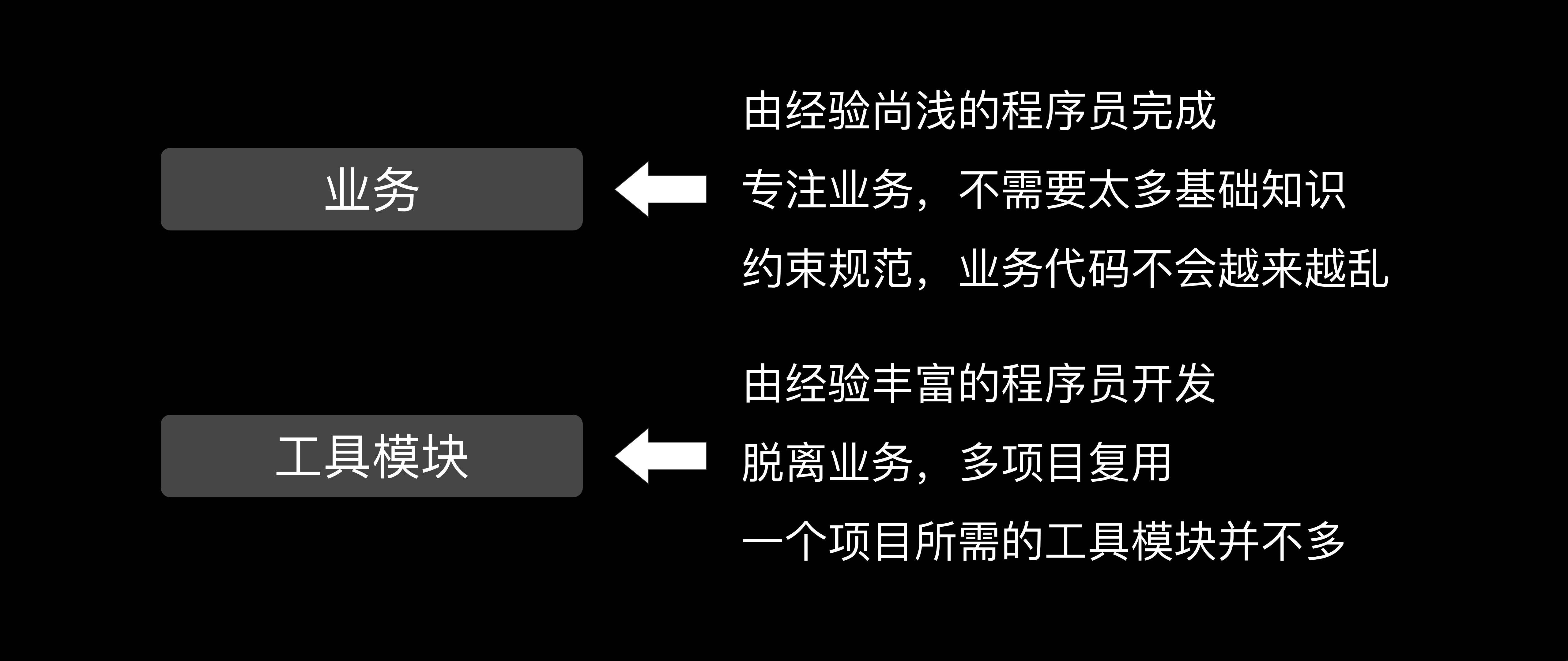 工具模块需要由经验丰富的程序员开发,但是可以脱离业务,多个项目复用。