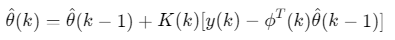 phi = [-y(k-1); -y(k-2); u(k-1); u(k-2)];
