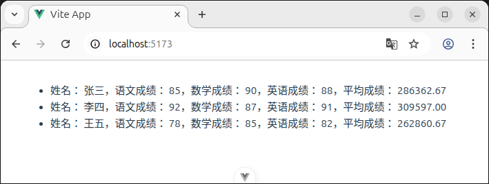 可见,在子组件中,添加了一个计算属性,用来计算三门课程的平均成绩。