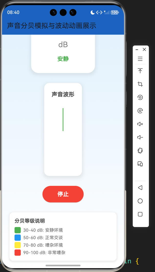 - 分贝范围:模拟 30-100 dB 的分贝值,覆盖日常生活中常见的声音水平