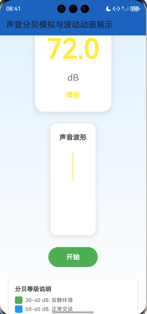 - 实时波形:根据当前分贝值生成并显示波形动画