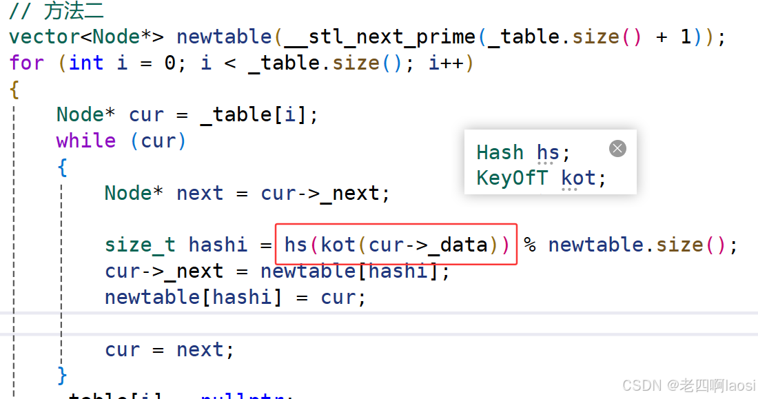比如Insert的扩容这里套了两层仿函数,效用kot就昂data中的key取出来,再用hs将key转换成支持取模的整型值。