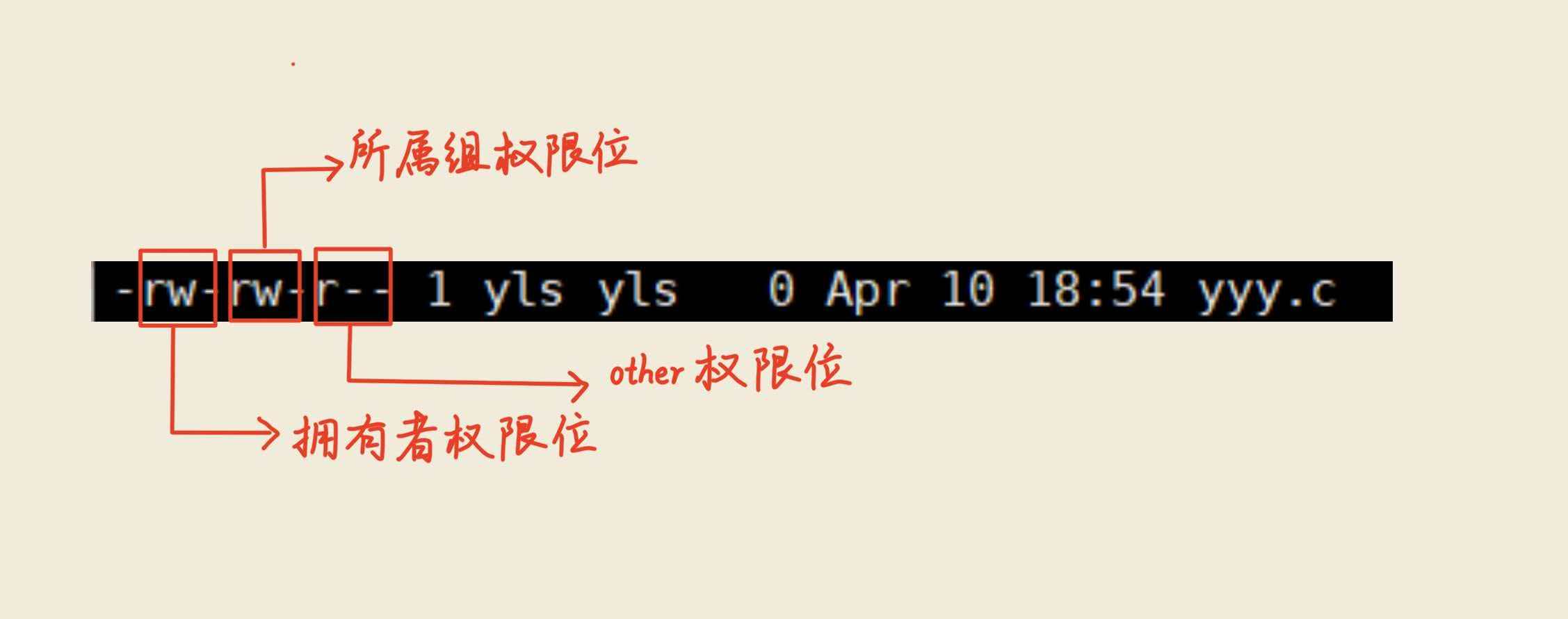 其中第一个yls是拥有者的名字,第二个yls则是所属组的名字。那other呢?为什么不显示other?很简单。other不需要记录 。