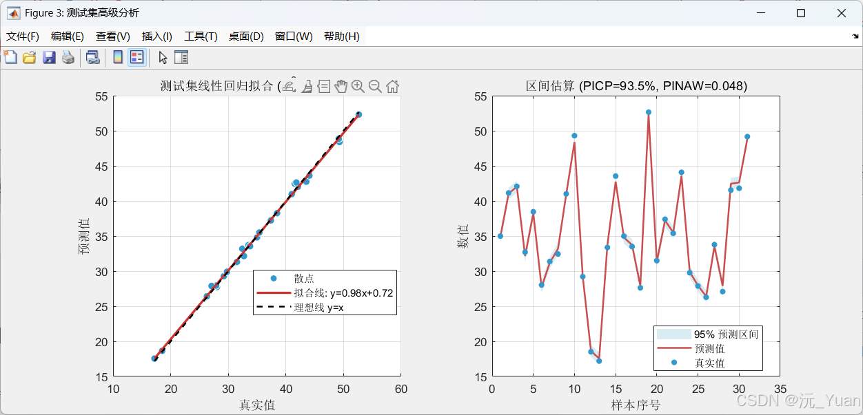 | 右图 | 预测区间阴影图(真实值 vs 预测值 vs 95%区间) | PICP是否达标,区间宽窄是否合理 |