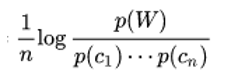 c1,cn 代表其中字,p(c1)字的频率连乘起来,p(w)词频