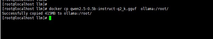 - docker cp /本地路径/你的模型文件.gguf ollama:/root/