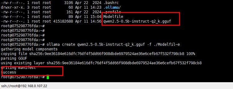 - ollama create qwen2.5-0.5b-instruct-q2_k.gguf -f ./Modelfile