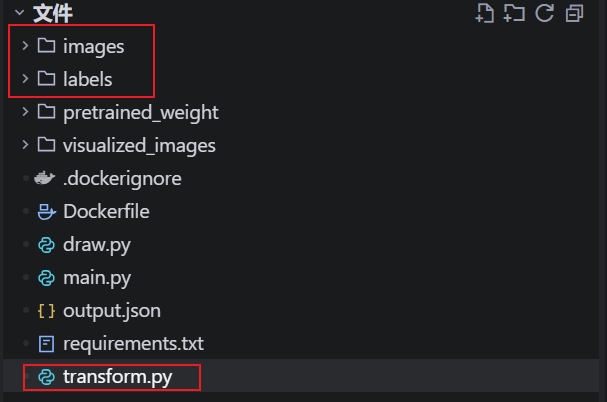 首先,你已经使用 YOLO 模型对数据进行了预标注,并将图片和预标注的标签信息在挂载目录 generate_json 内按照下图所示结构放好。然后运行 transform.py 代码。