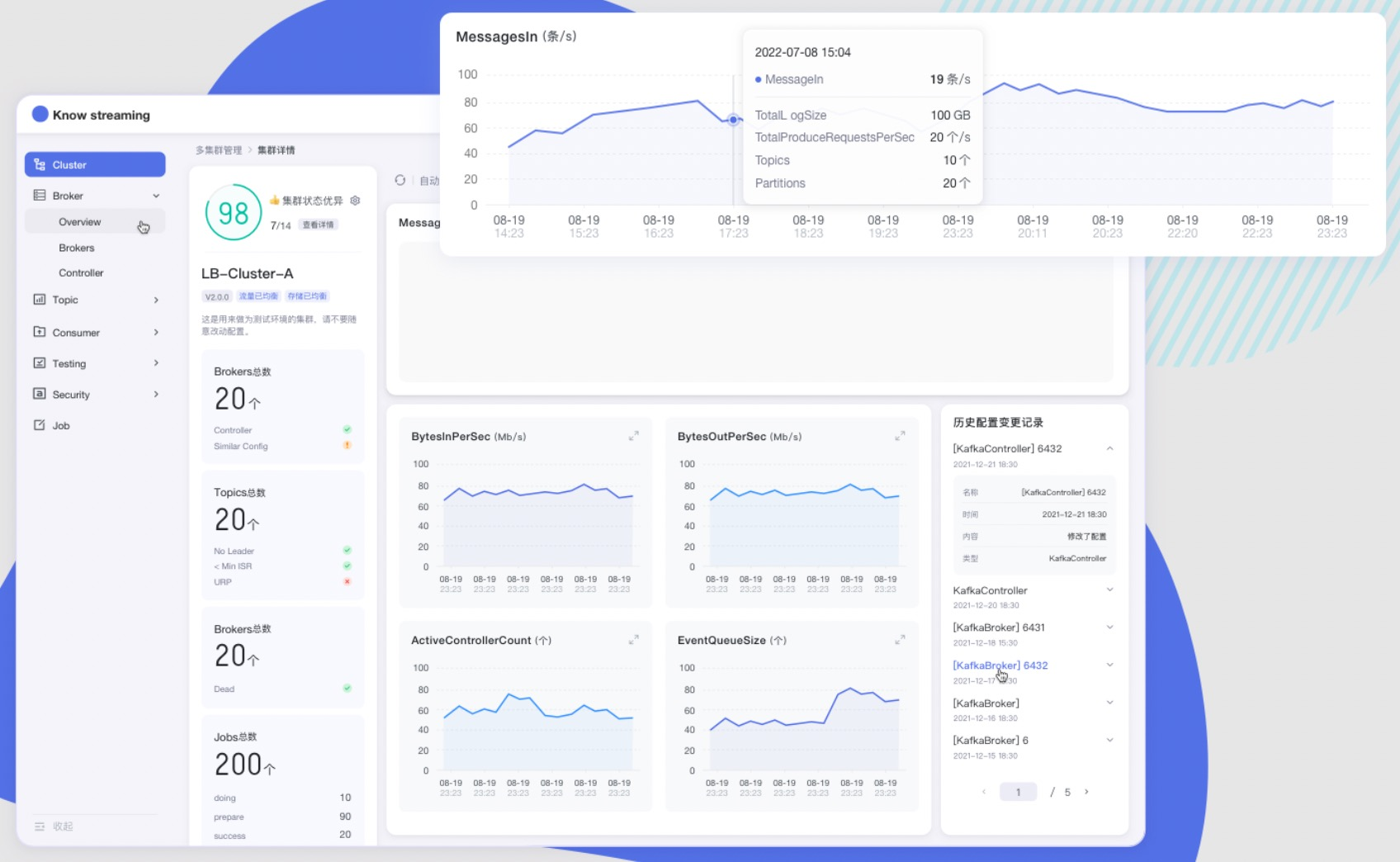Know Streaming 是一套云原生、开源(AGPL-3.0 license)的 Kafka 管控平台,脱胎于众多互联网内部多年的Kafka运营实践经验,专注于Kafka运维管控、监控告警、资源治理、多活容灾等核心场景。在用户体验、监控、运维管控上进行了平台化、可视化、智能化的建设,提供一系列特色的功能,极大地方便了用户和运维人员的日常使用,让普通运维人员都能成为Kafka专家。